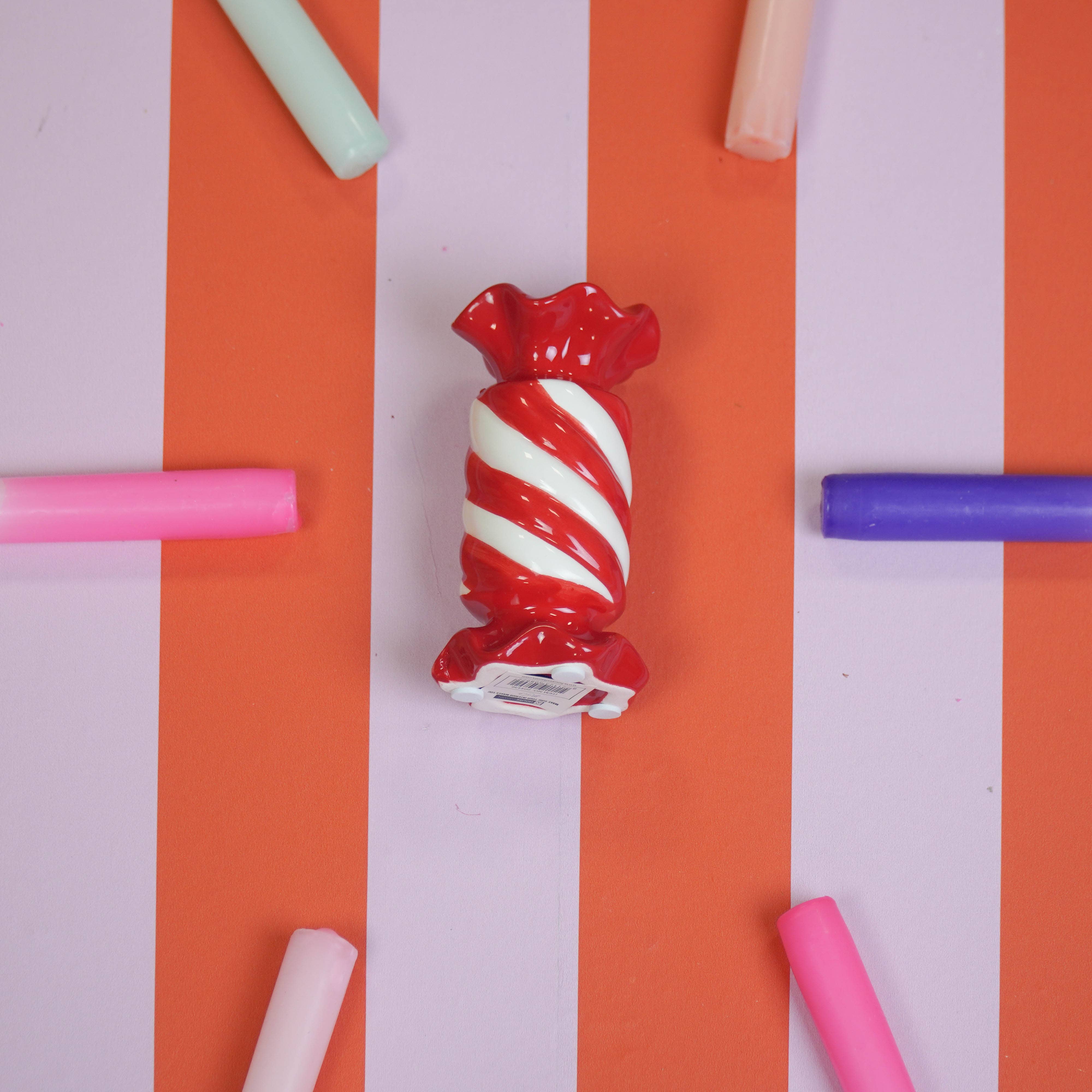 Candy Candle Holder - Red/White