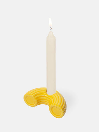 Light up your space with a candle holder that looks good enough to eat! This macaroni design adds cheeky charm to your table or shelf.