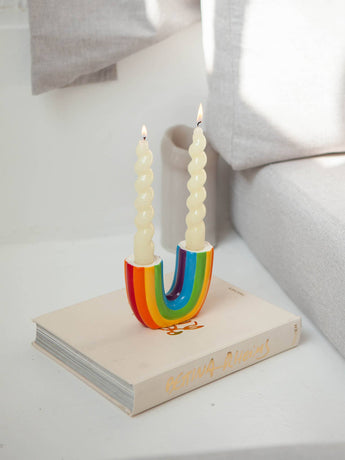 Add a pop of colour to your décor with the Rainbow Double Candle Holder. A vibrant and stylish design to brighten any corner!