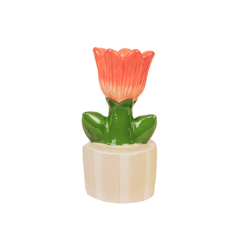 Bring floral charm to your décor with this Tulip Bloom Ceramic Candle Holder. Shaped like a blooming tulip in soft coral with vibrant green leaves, it rests on a sturdy base for a sculptural, whimsical look. Perfect for taper candles, it adds colour and personality to dining tables, mantels, or shelves. Whether used for everyday ambiance or styled as a decorative accent, this piece blends function with maximalist flair.