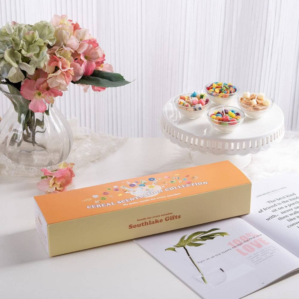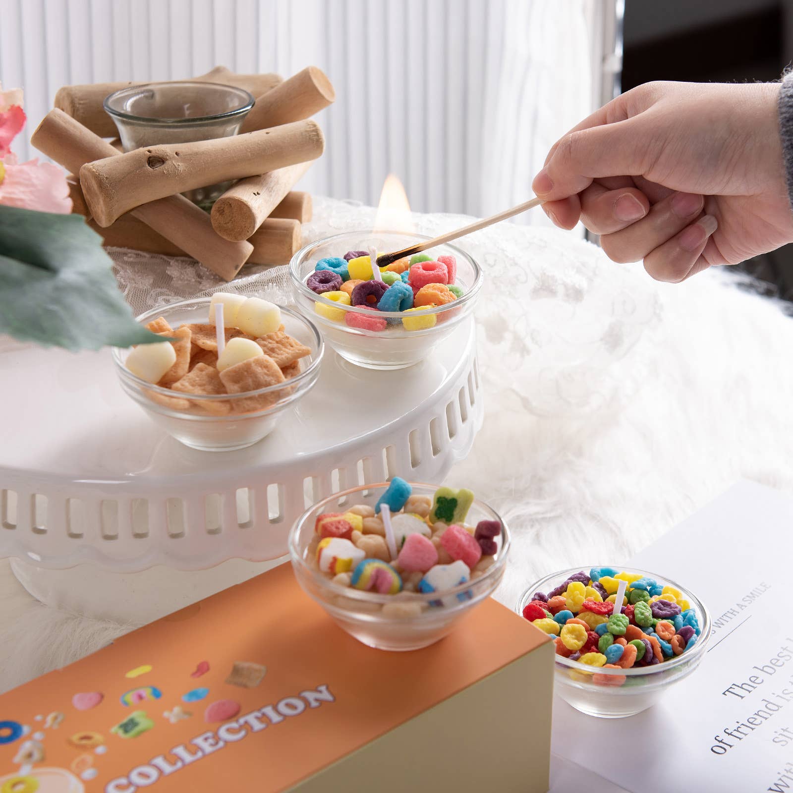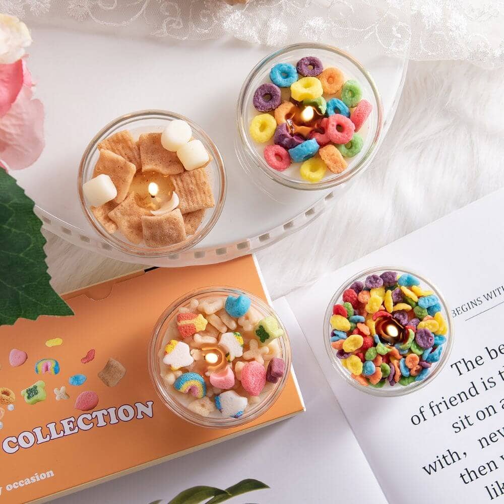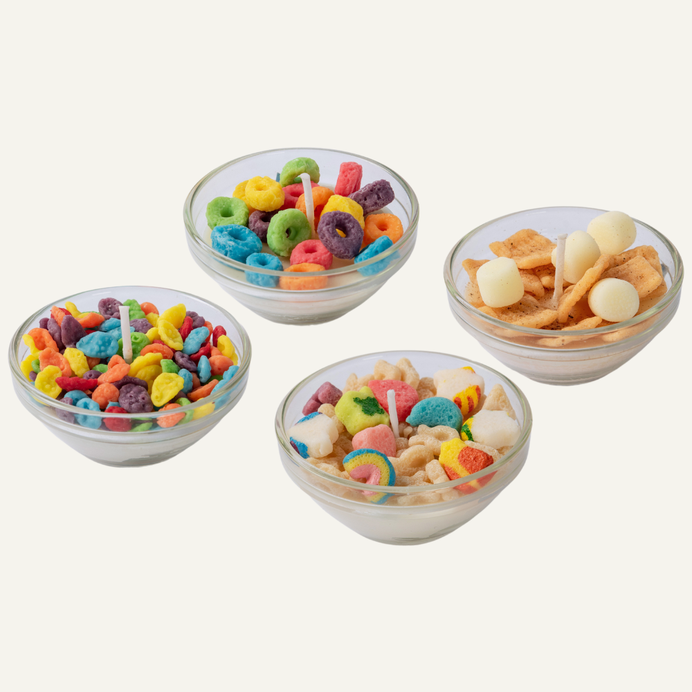 Introducing the Cereal Scentsations Candle Gift Set, a handcrafted and hand-poured collection that combines the enchantment of breakfast nostalgia with the artistry of candle making. This set includes four mini-sized candles, each meticulously hand-painted to capture the essence of beloved cereals: Lucky Charms, Froot Loops, Fruity Pebbles, and Cinnamon Toast Crunch. Presented in gift-ready packaging, this collection is perfect for any occasion, whether it's a wedding gift, housewarming present, or simply a treat for yourself. The attention to detail is evident in every aspect of these candles, from their exquisite fragrance to their stunning visual appeal!