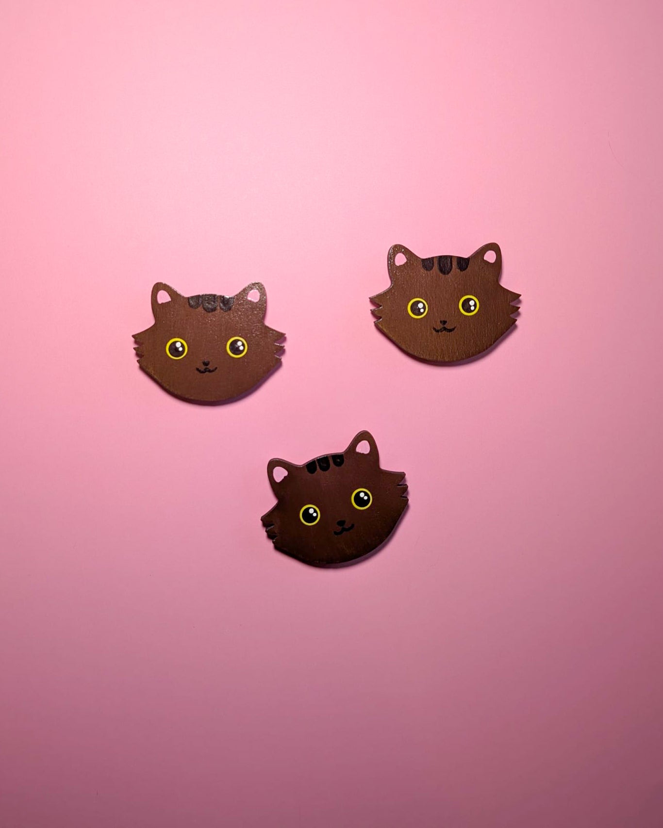 Warm and cozy, these fluffy brown tabby cat magnets bring comforting autumn energy wherever they go. Their bright yellow eyes and soft brushstroke details make them stand out while staying irresistibly cuddly.