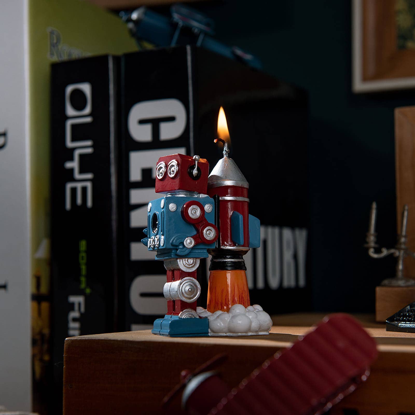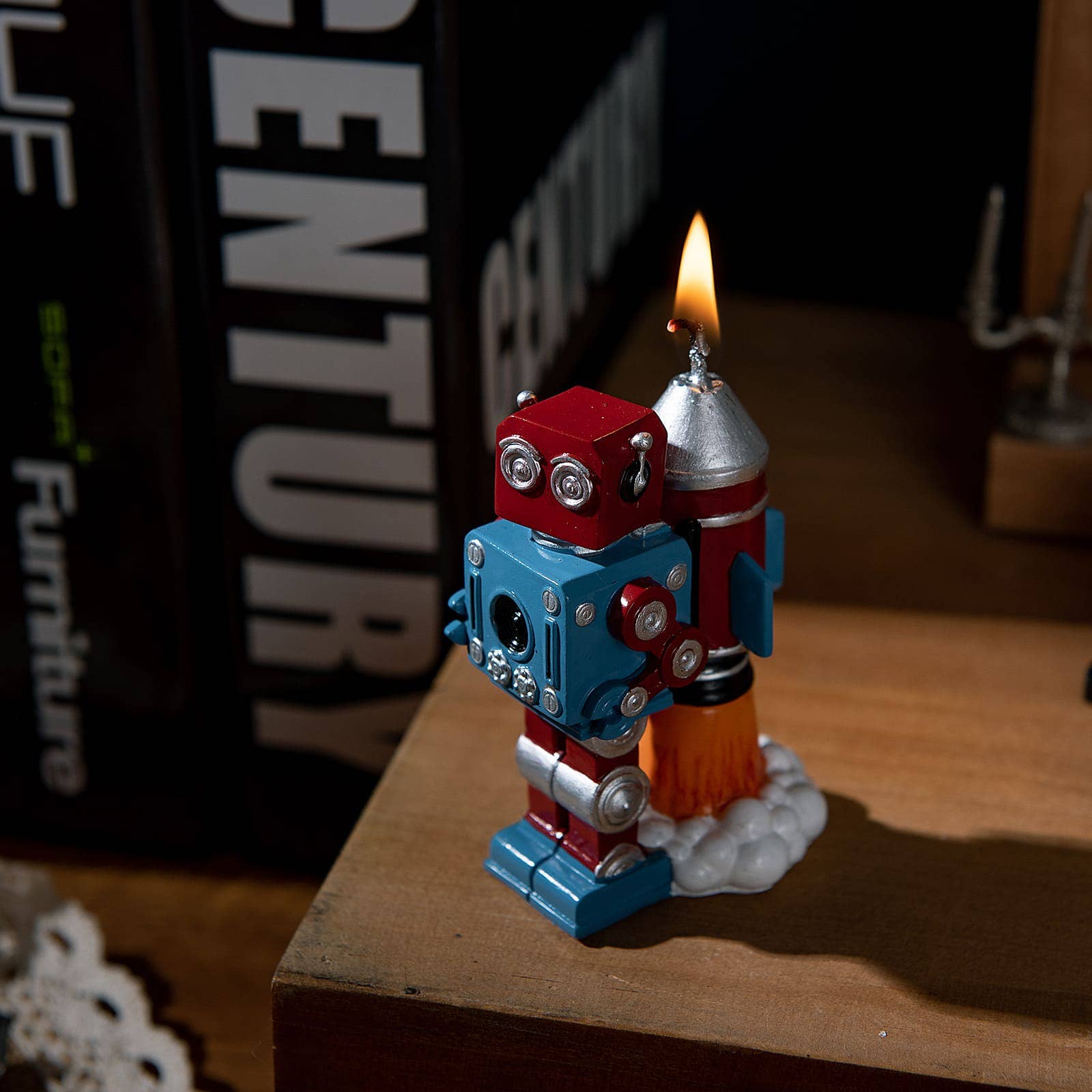 Vintage Robot Rocket Candle
