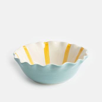 Blue & Mustard Stripe Frilly Bowl