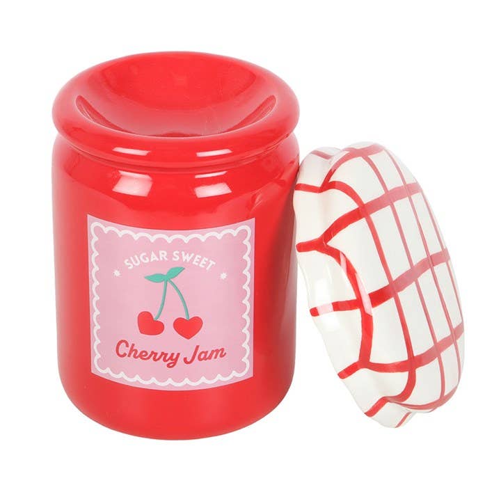 This charming ceramic oil burner and wax warmer is shaped like a traditional jam jar with a glossy, cherry-red finish, accompanied by a gingham red and white lid. This adorable burner doubles as a quirky ornament when not in use. Always remove the lid when in use.