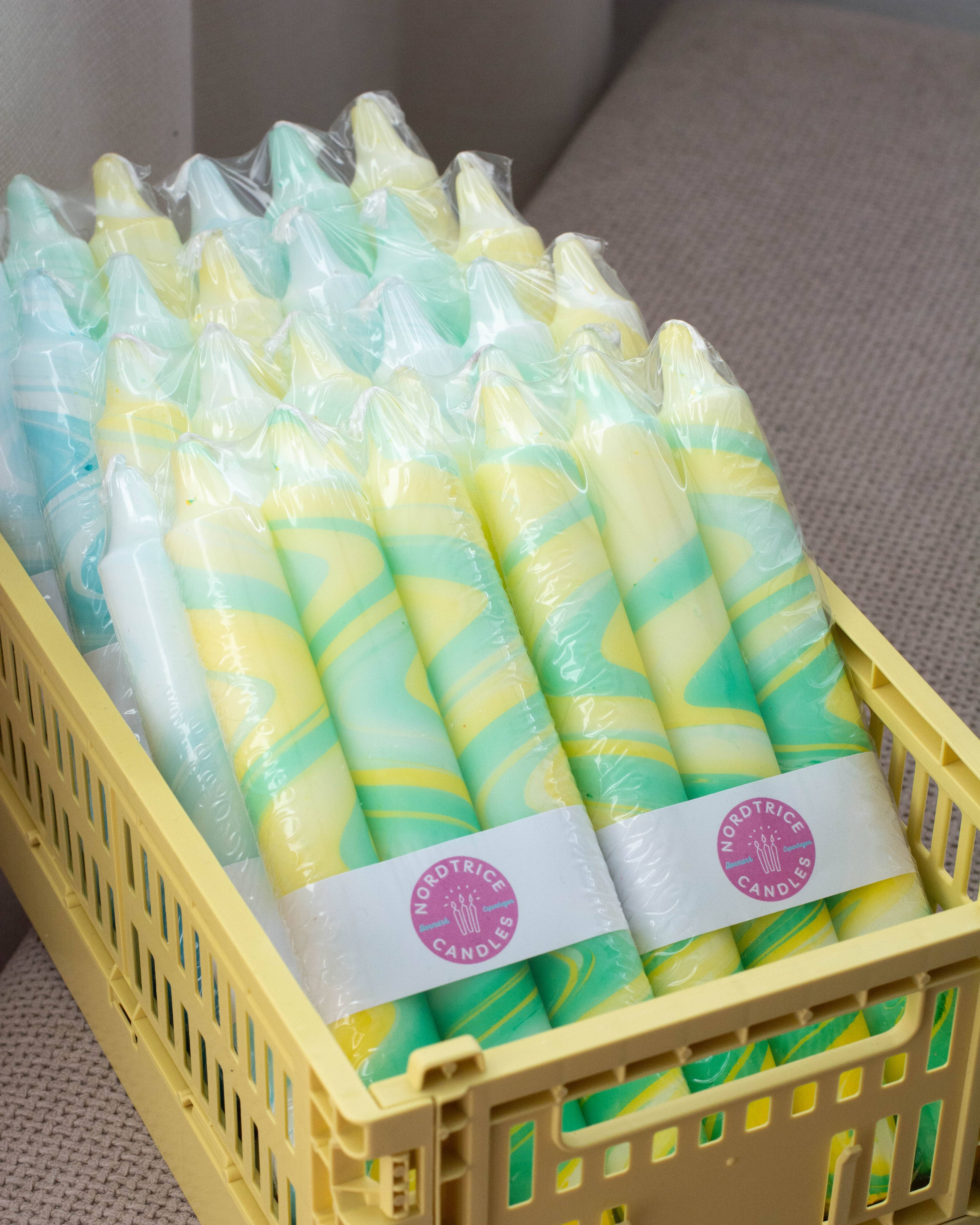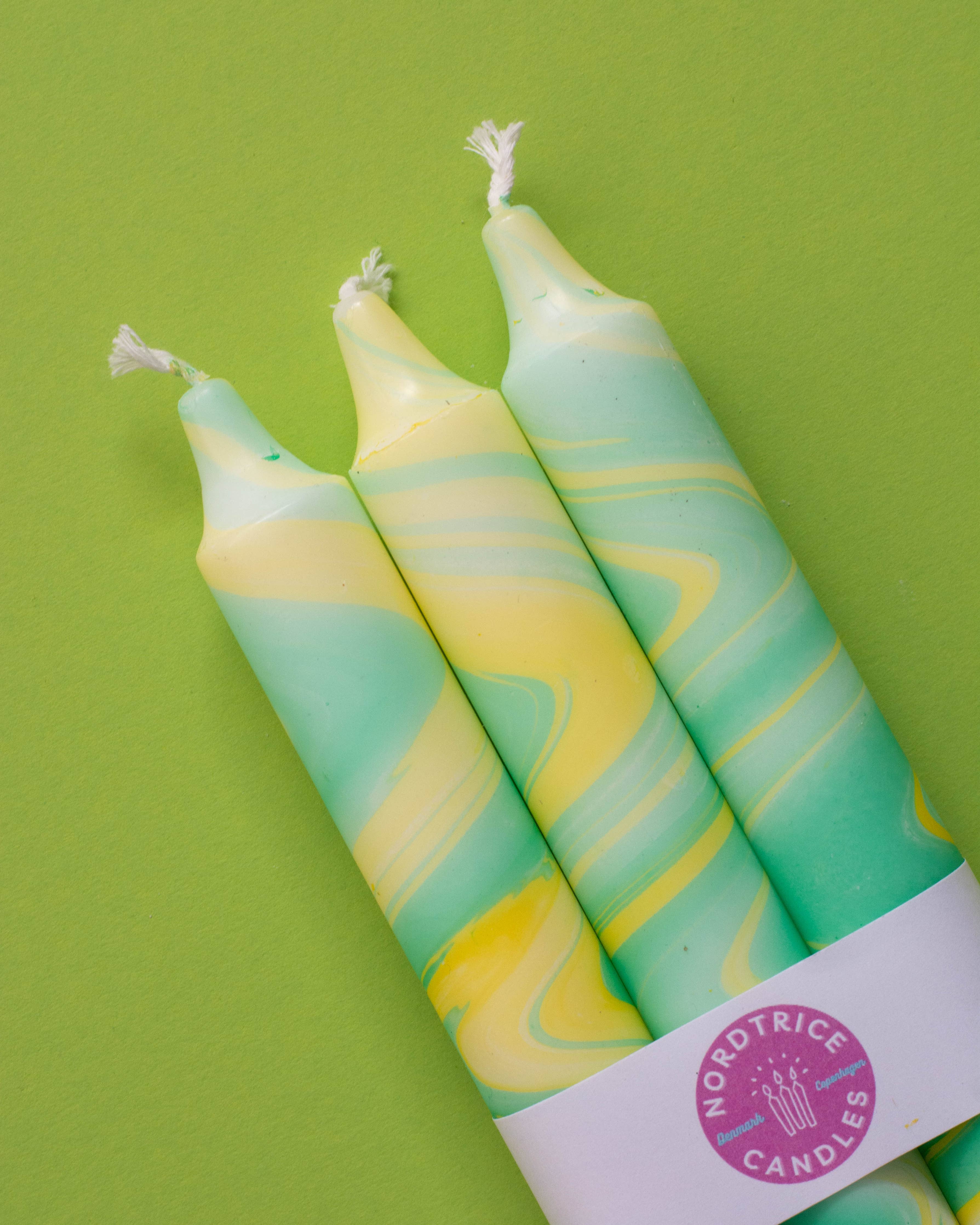 Taper Candles - 3 Pack/ Spring Green Marble Mix