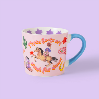 Kick up your heels with this These Boots Are Made For Dancing Mug! Featuring a fearless cowgirl ready for adventure, it’s sprinkled with playful western icons and starry details. This bold and charming mug is a daily reminder that life’s better when you dance through it - boots on, hat held high, and heart full. Perfect for dreamers, doers, and dancers at heart.