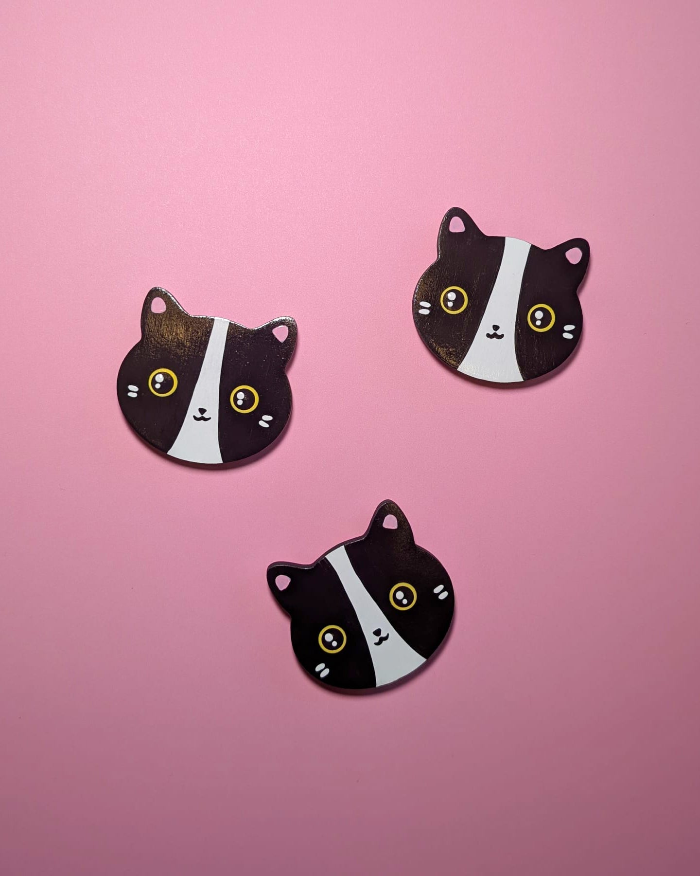 These bold tuxedo cat magnets feature a striking white stripe and rounded features that make them impossible to ignore. Cheerful, quirky, and full of charm — they’re a perfect gift for every tuxedo-cat lover.