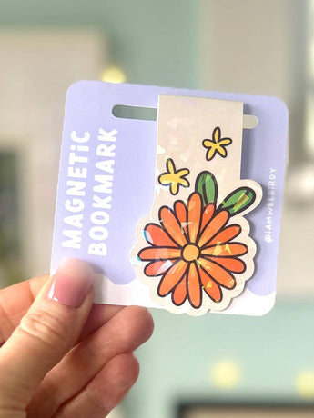 Orange chrysanthemum sparkly magnetic bookmarks. The perfect small gift for book lovers.