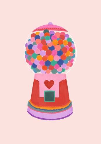 Bubble Gum Hand Drawn Art Print. Perfect for a colourful touch to any room!