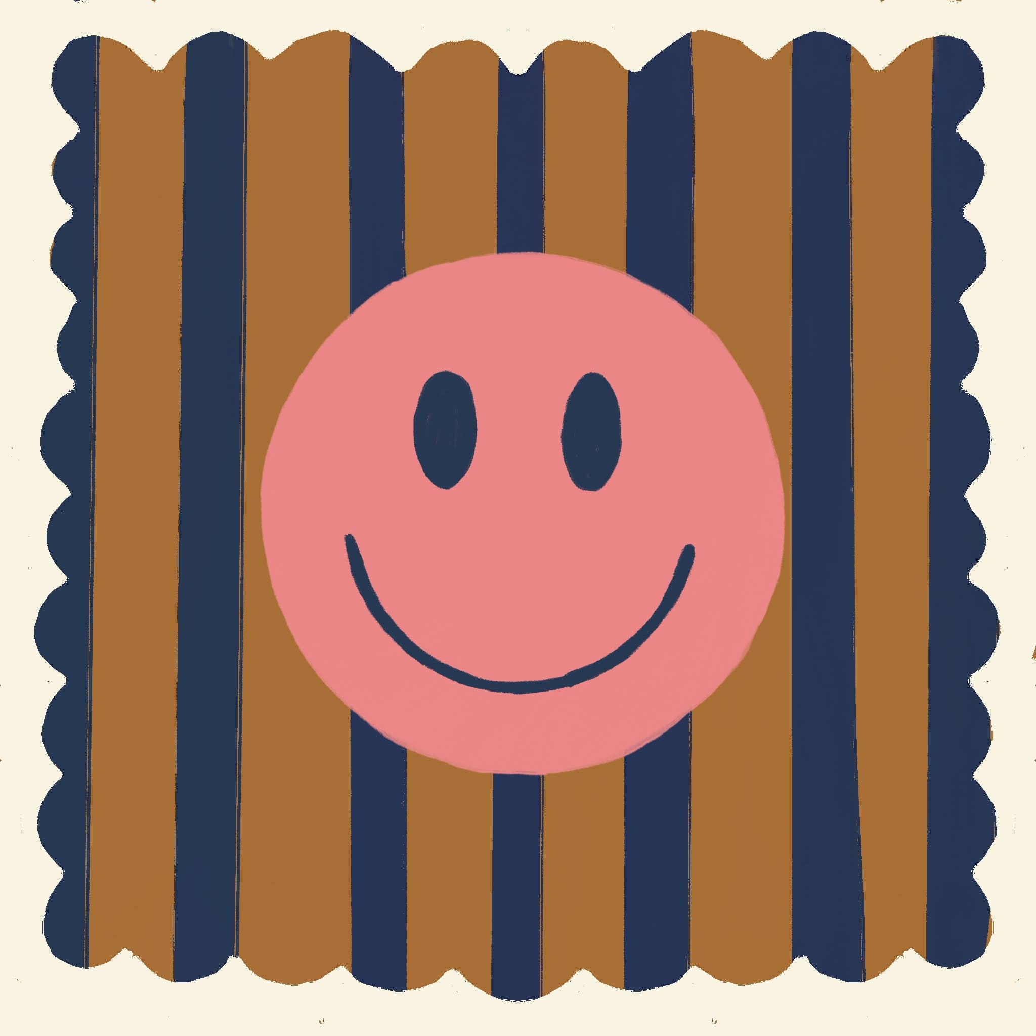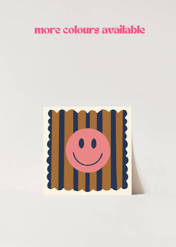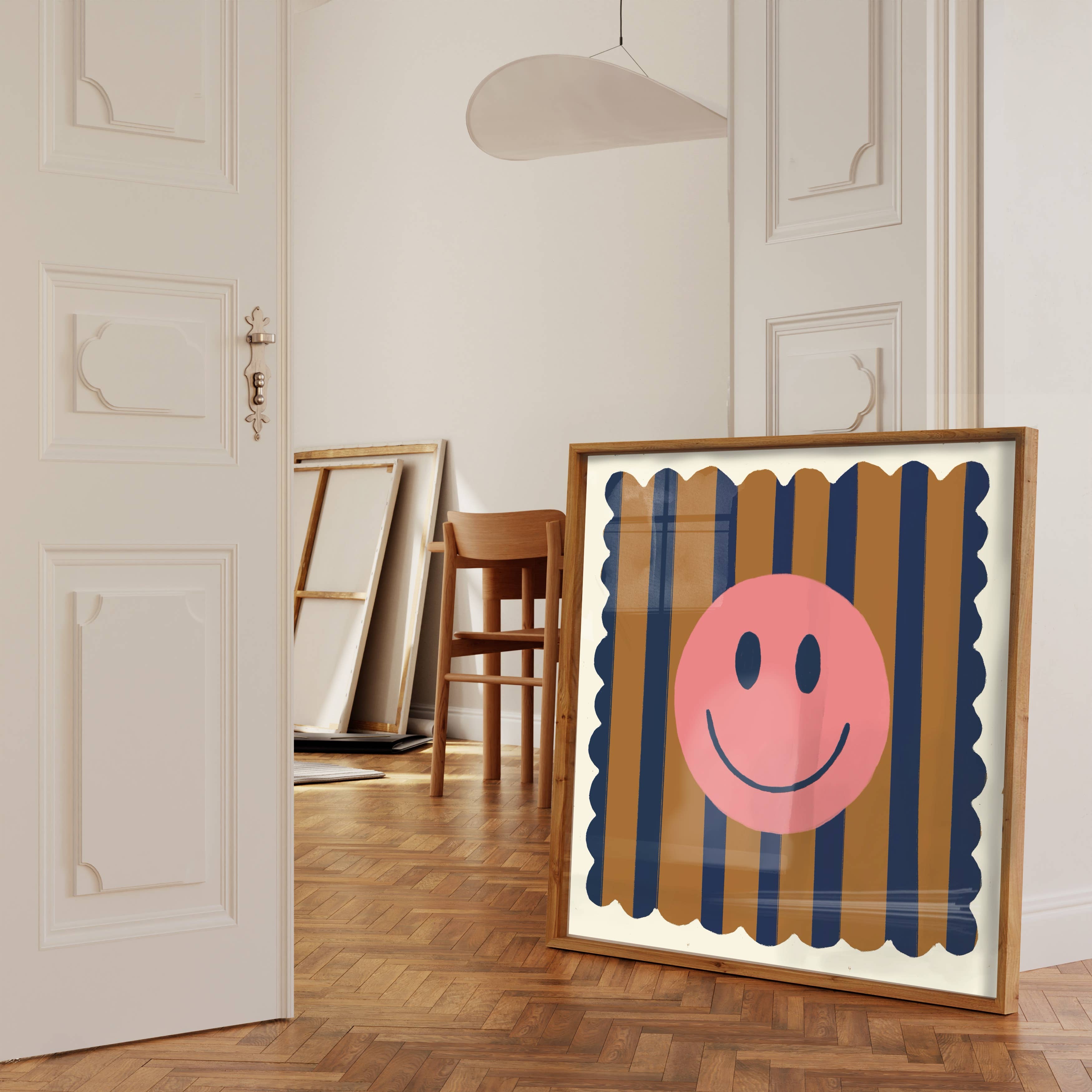 Navy Stripe Smiley Hand Drawn Art Print. Perfect for dopamine décor and maximalist hearts searching for colourful wall art.