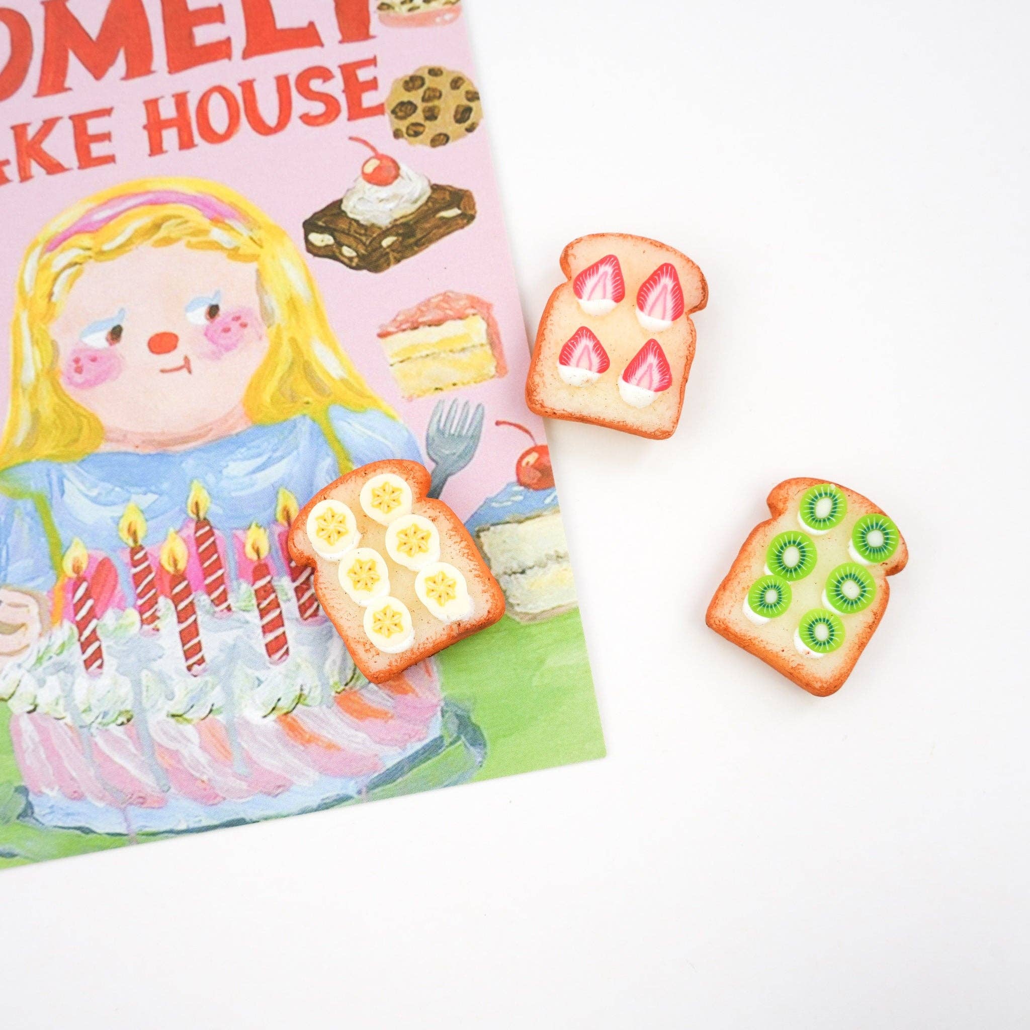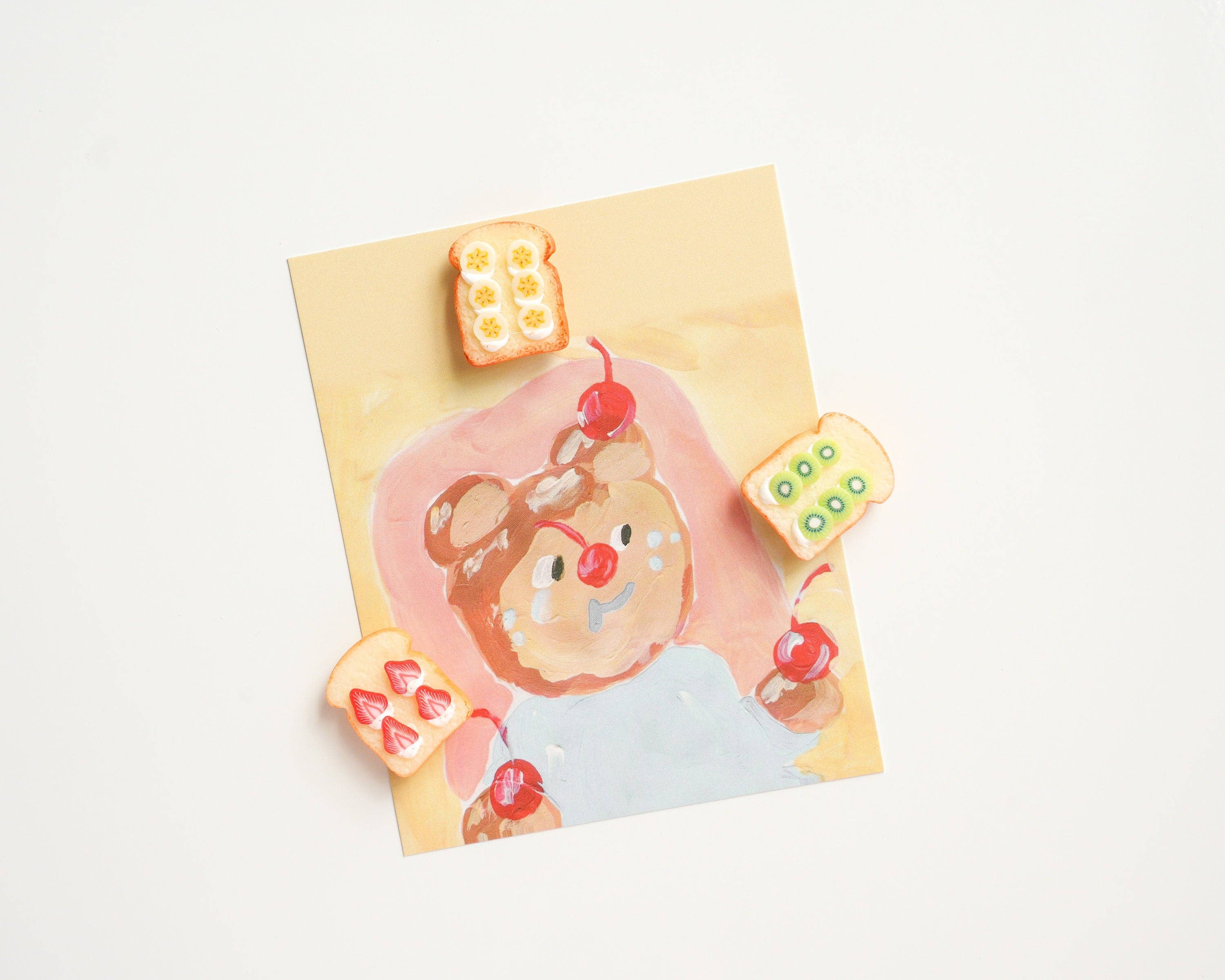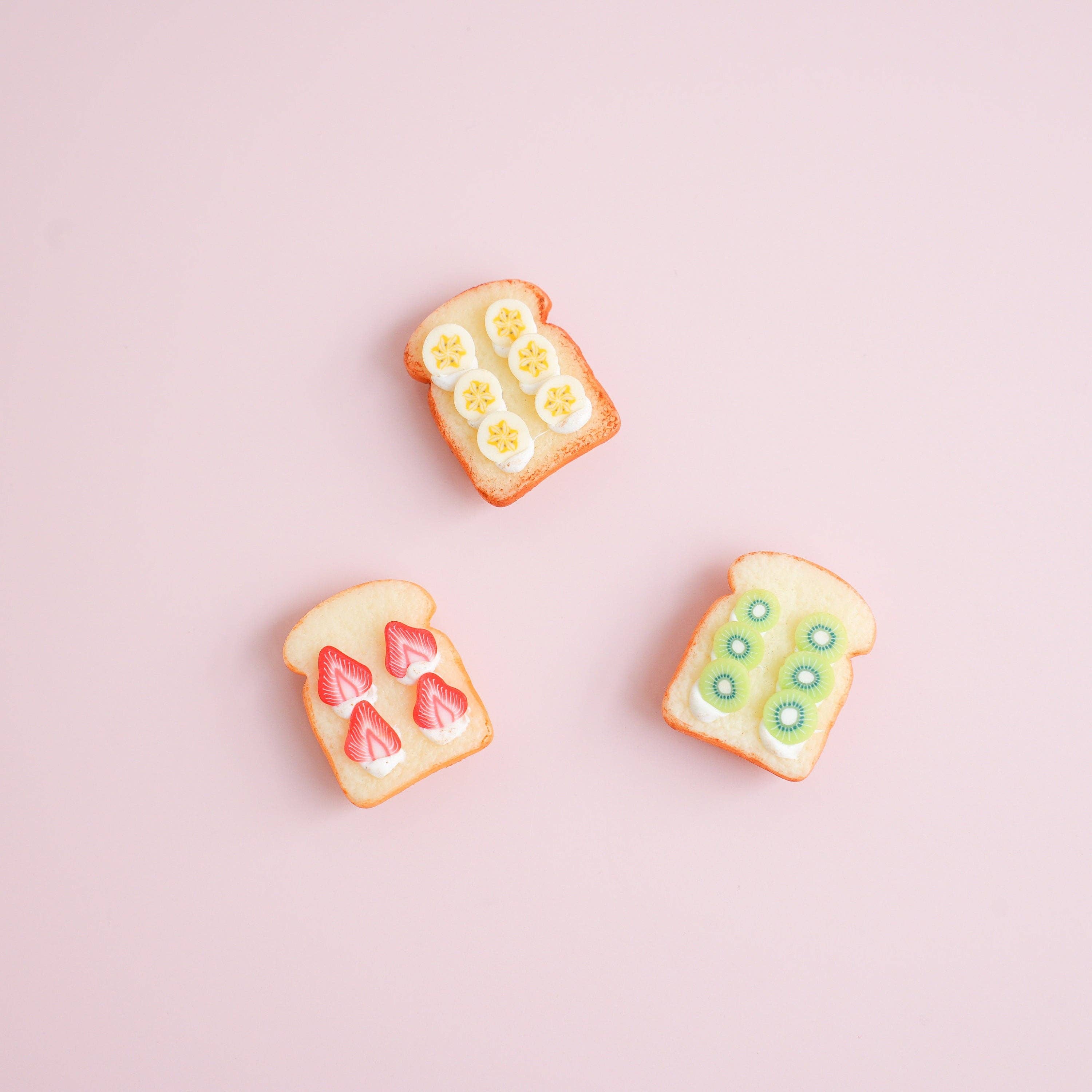 Découvrez notre ensemble d'aimants « Toasts aux fruits » : la touche idéale pour votre cuisine ou votre tableau d'affichage ! Ces adorables mini-aimants représentent des tranches de pain grillé garnies de délicieux fruits (banane, fraise et kiwi). Pratiques et décoratifs, ils apporteront une note charmante et originale à votre intérieur.