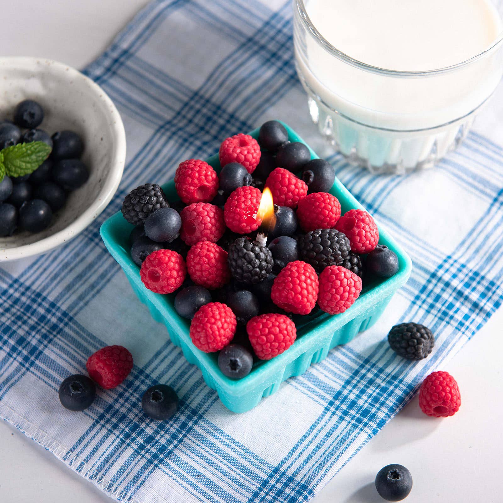 Une bougie réaliste aux fruits rouges avec un panier entièrement en cire, conçue pour une présentation ludique et un cadeau interactif. Cette bougie panier de fruits rouges recrée un panier de baies de style marché fermier avec des myrtilles, des mûres et des framboises en vrac qui peuvent être arrangées à l'intérieur du bol pour une présentation personnalisable. Le panier lui-même est entièrement fait de cire — sans papier ni plastique — offrant une finition plus propre et plus élégante.