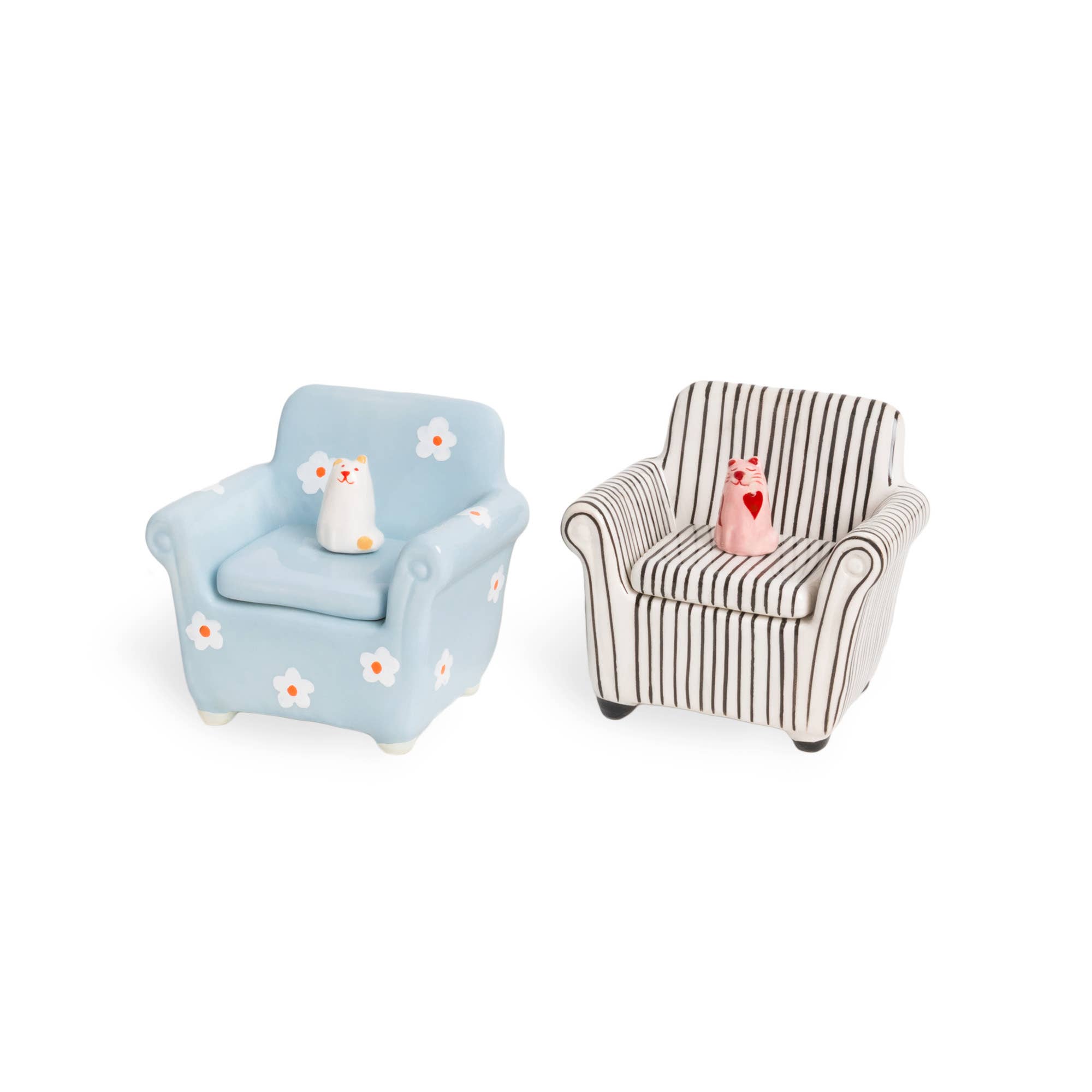 Boîte à bijoux/bijoux inspirée d'un fauteuil fleuri orné d'un chat, idéale pour les amateurs de designs romantiques et originaux. Intérieur pratique et design pour ranger bijoux et accessoires.