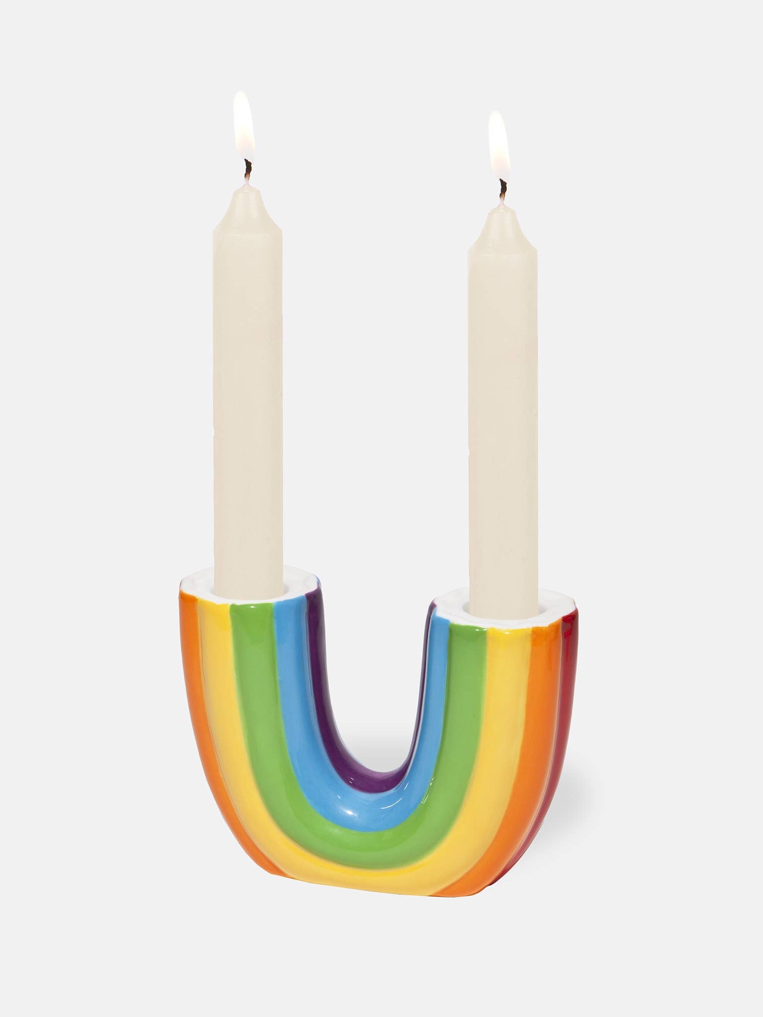 Porte-bougie double arc-en-ciel