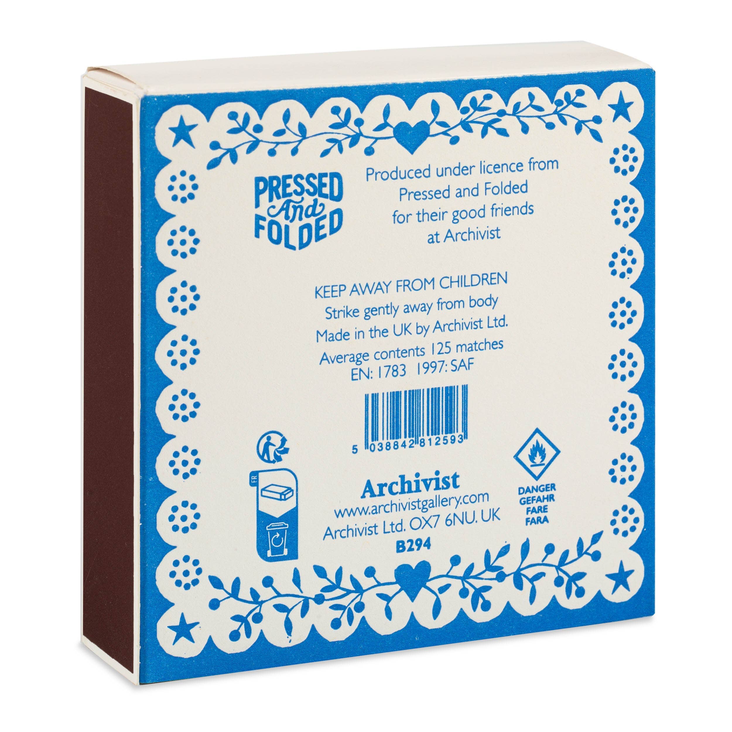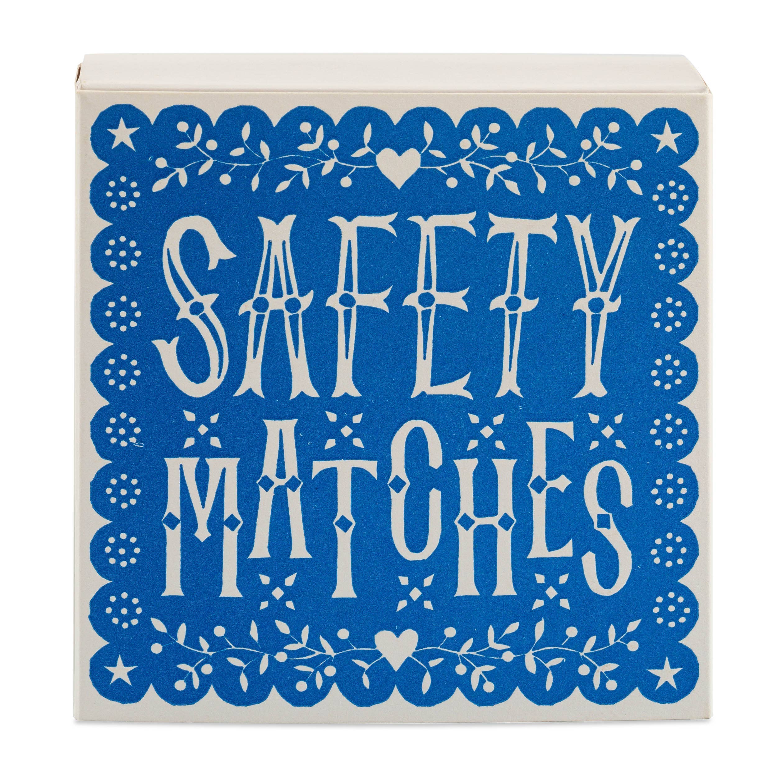Découvrez la boîte d'allumettes carrée « Safety Matches », inspirée de leur linogravure à succès et sérigraphiée dans un magnifique bleu. Remplie de longues allumettes en bois, elle est idéale pour allumer des bougies, de l'encens ou votre cheminée, tout en étant suffisamment élégante pour être exposée. Un petit accessoire discret qui apporte une touche de couleur à n'importe quelle étagère ou table d'appoint.