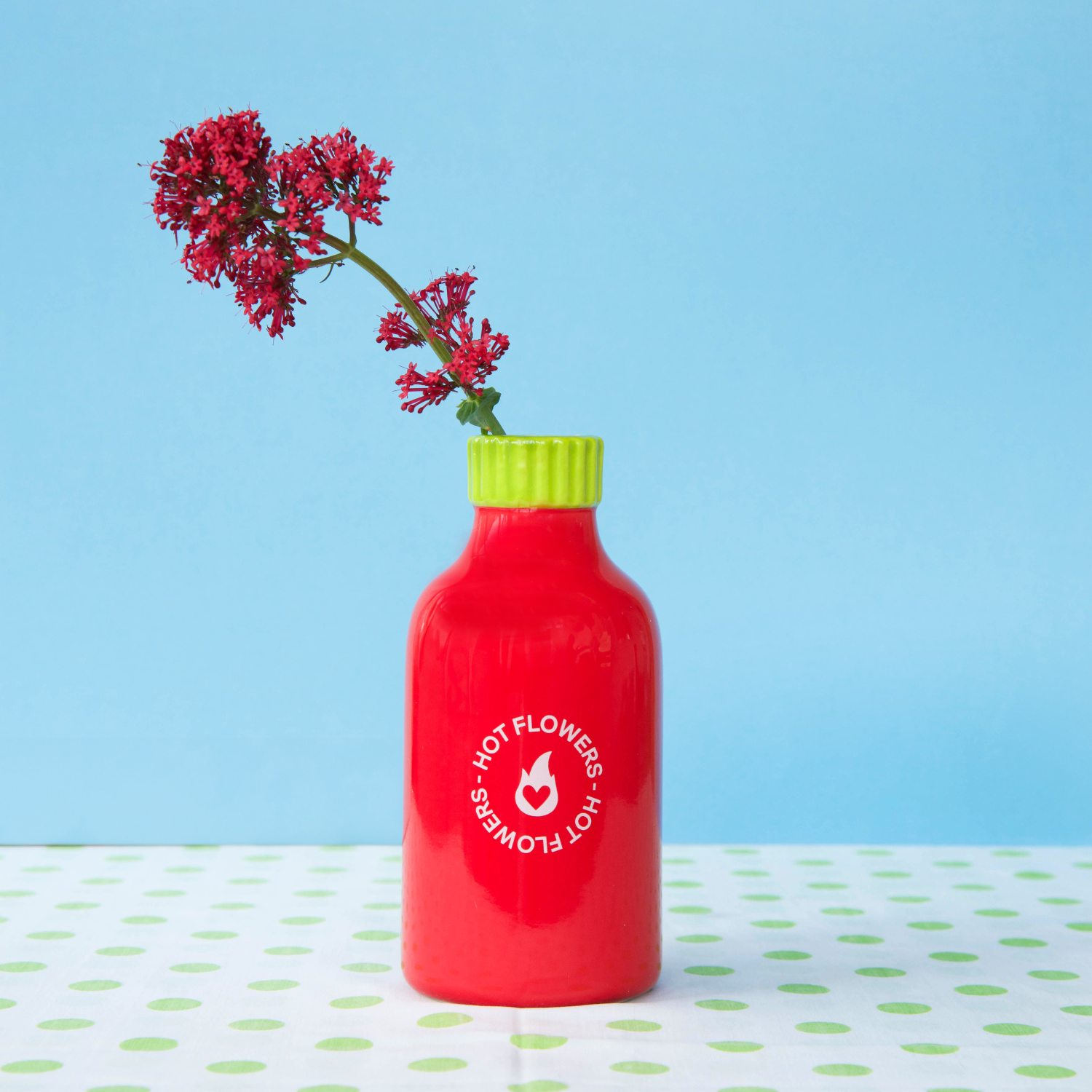 Vase en céramique audacieux, en forme de bouteille de sauce piquante, avec l'inscription « Fleurs piquantes ». Une pièce originale pour égayer votre décoration !