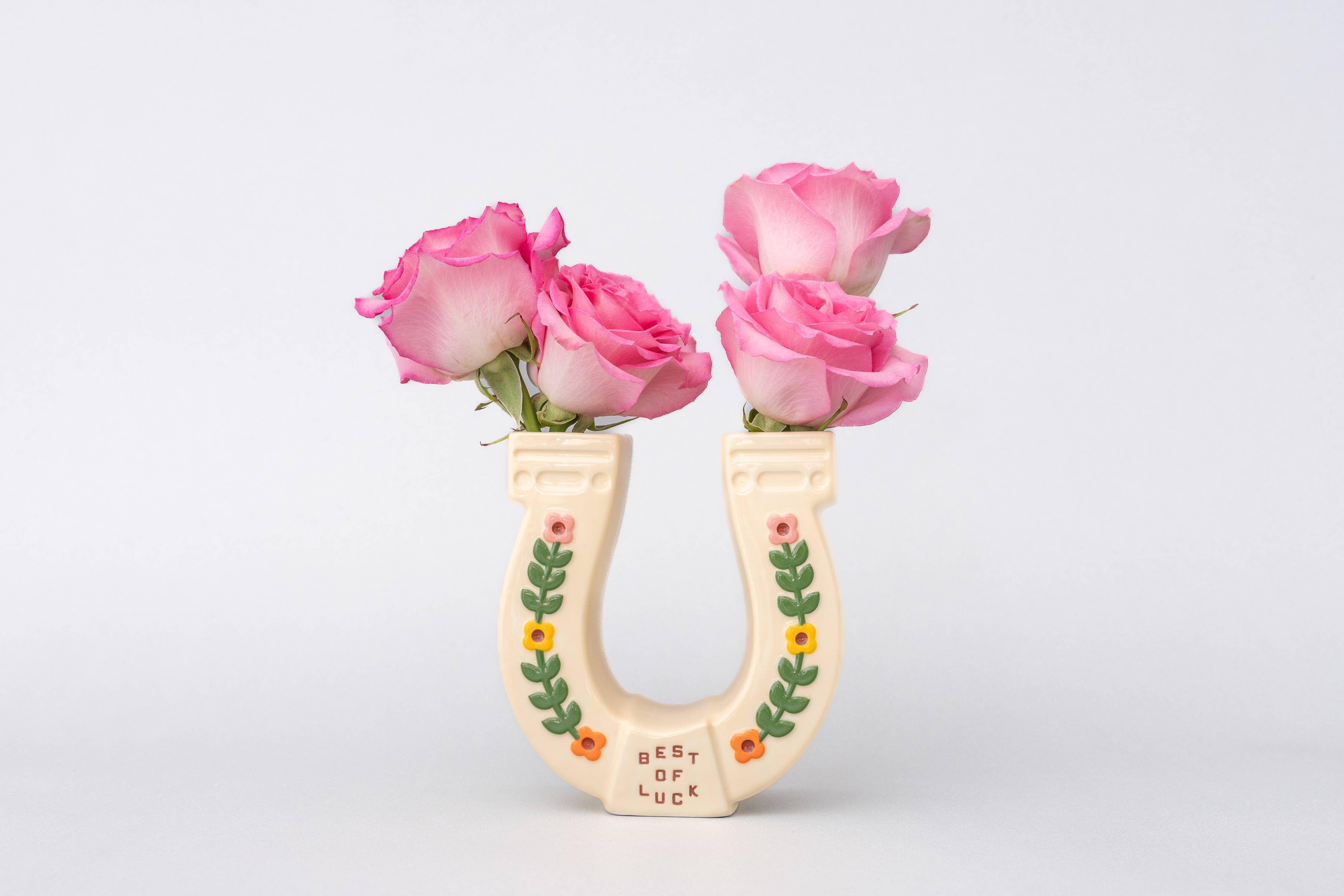 Lucky you! You just stumbled upon the cutest ceramic horseshoe vase. Stick a few stems in each side or add some pens and pencils into the mix!