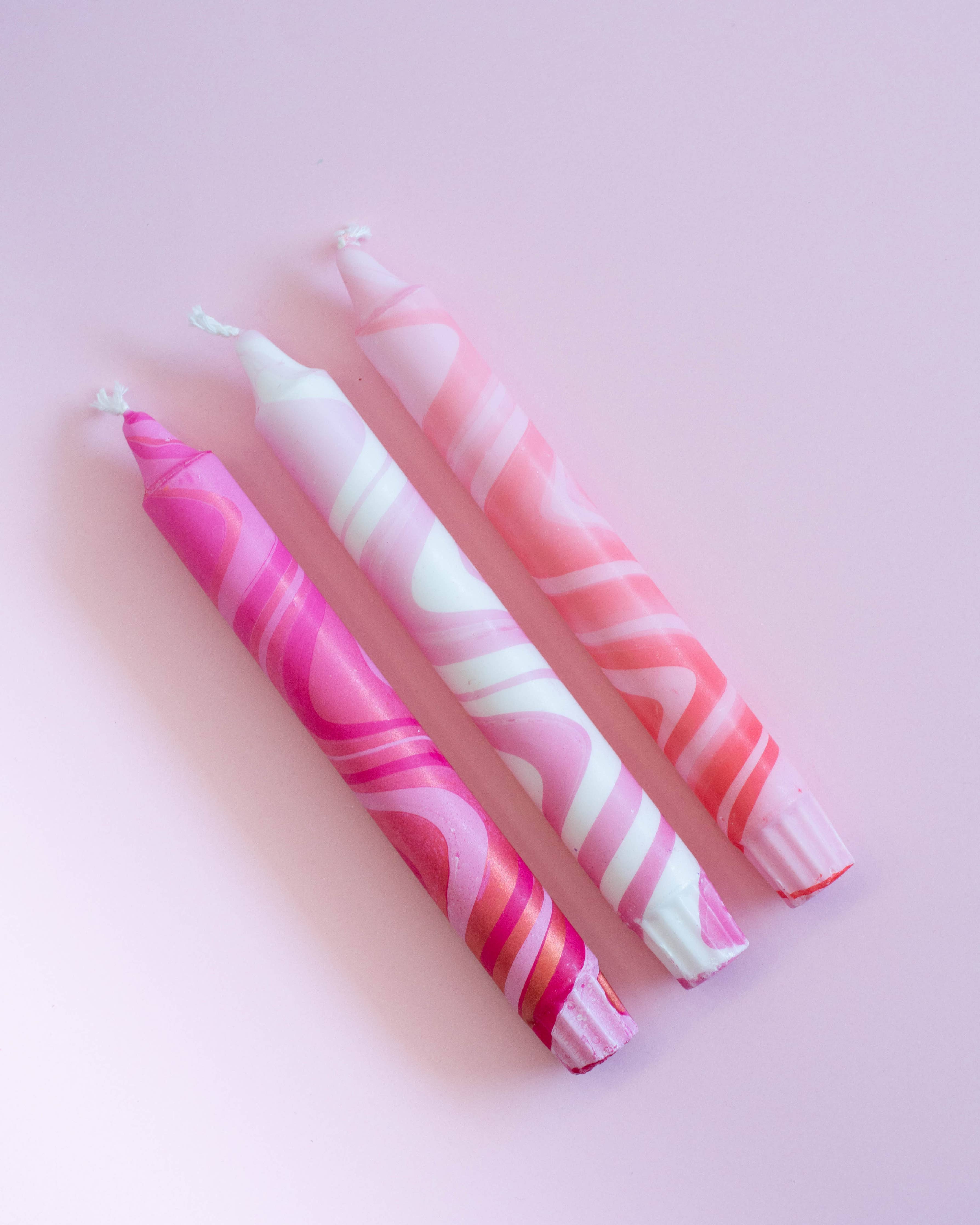 Taper Candles - 3 Pack/ Pink Marble